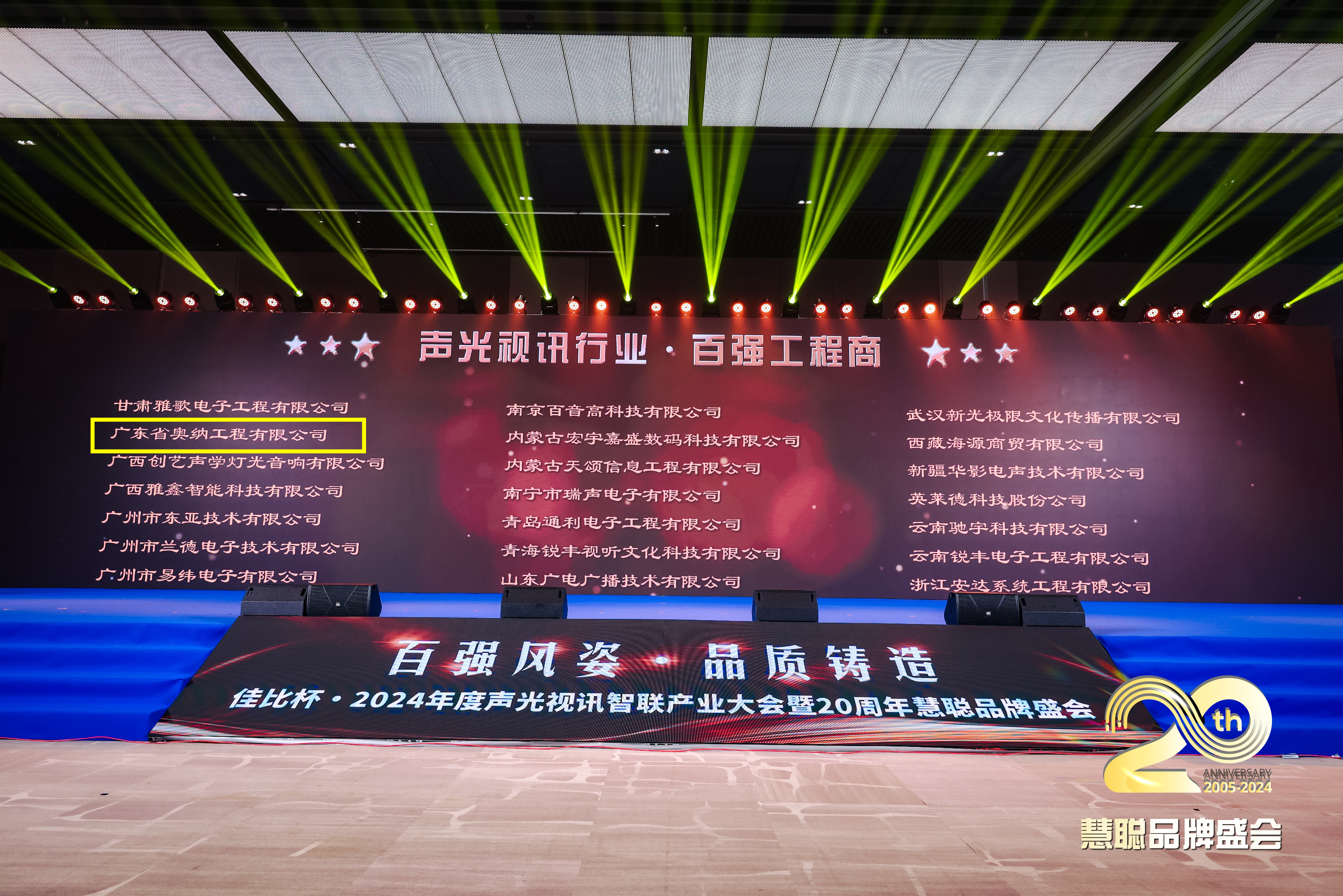 本次评选经过2个多月全方位考核,1600余家上下游企业参评,13个品牌奖项覆盖行业各个领域370万网络投票,130万视频企业/品牌短视频关注度,1000名工程商、演出商实名投票,8位专家老师权威评审,1万观众在线共同见证下。广东省奥纳工程有限公司凭借过硬的综合实力和深厚的行业品牌影响力,连续五年获得“全国百强工程商,省级十强工程商、”荣誉。这不仅是对奥纳工程过去辛苦付出的肯定,更是对未来发展的激励。